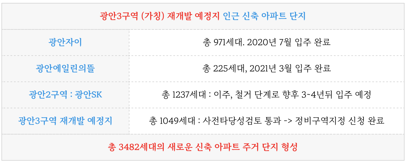 수영구 광안동의 아주 많은 재개발 예정지와는 상당한 진행 시간의 차이가 나는 것을 물론