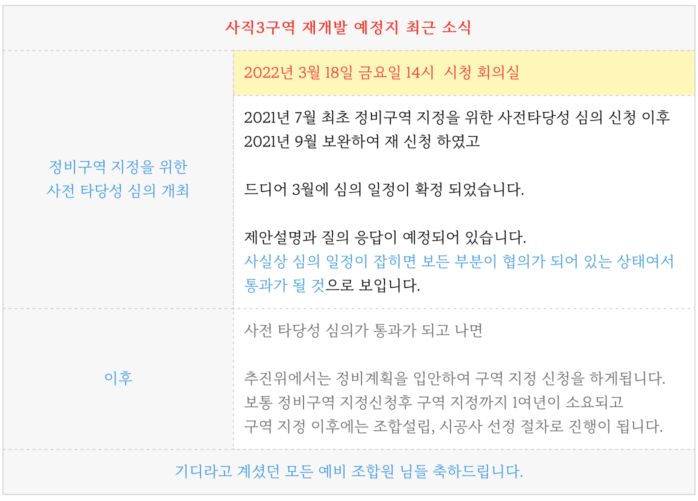 사직3구역 재개발 예정지의 최근 소식은 사타 심의 개최 일정 확정 입니다.