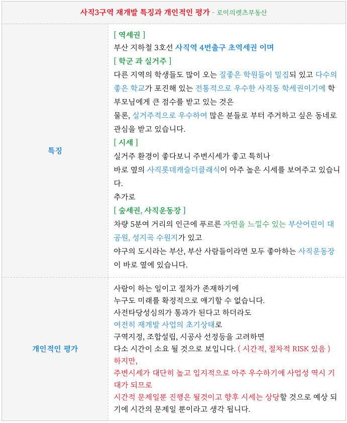 사직3구역 (사직통합) 재개발 예정지 좋은 물건을 소개해 드리겠습니다.