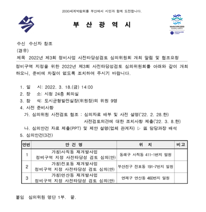 재개발 진행을 위한 첫번째 공식 심의인 사전타당성 심의는