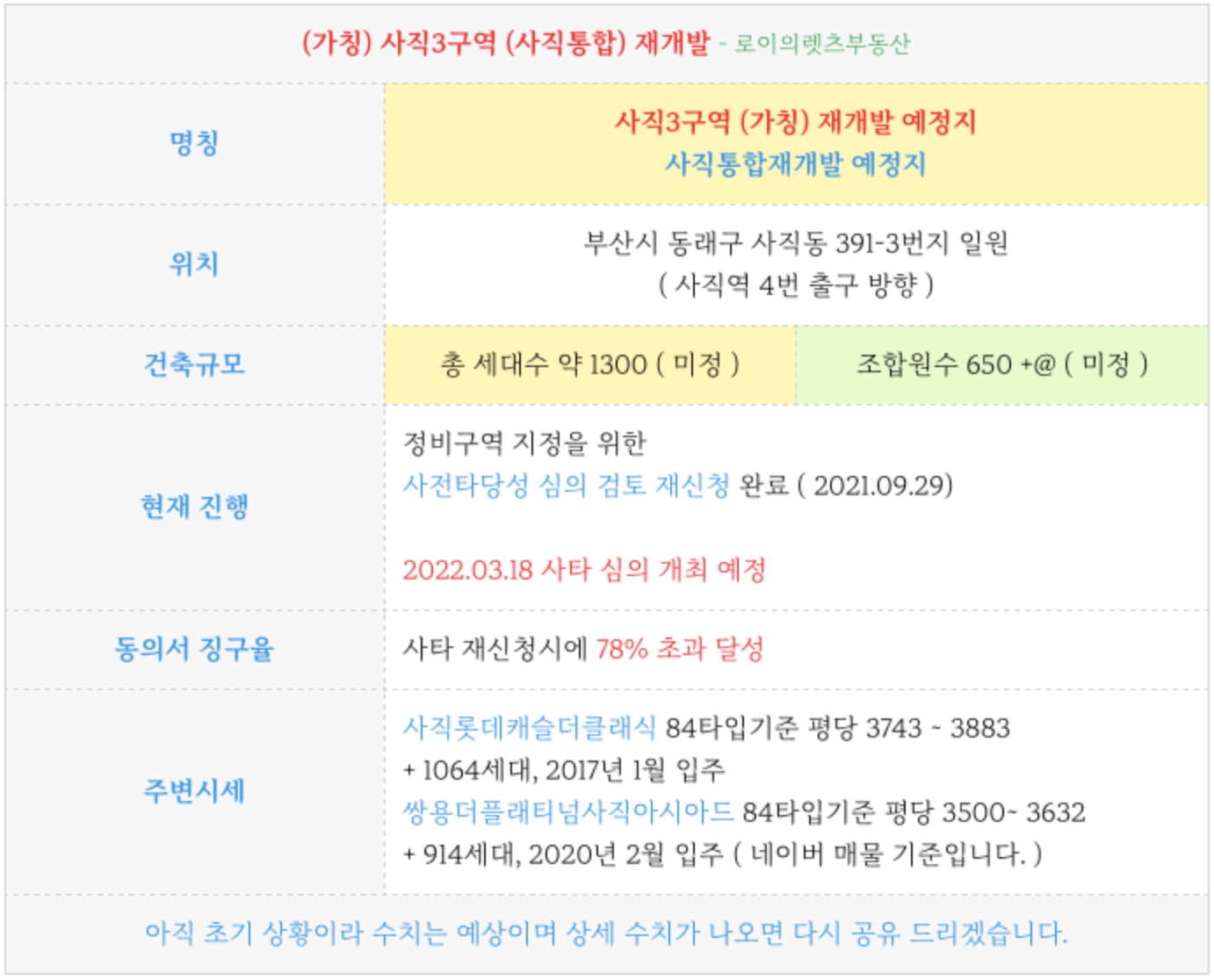 " 사직3구역 재개발 : 사타일정소식!(03/18) " 과 현 좋은 매물들 소개