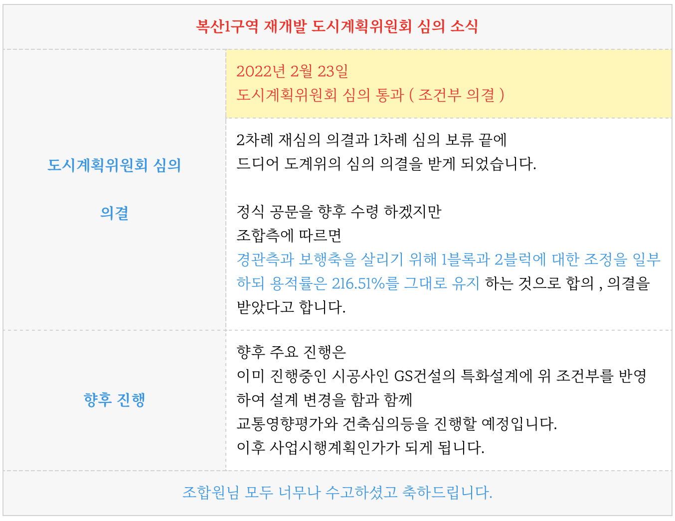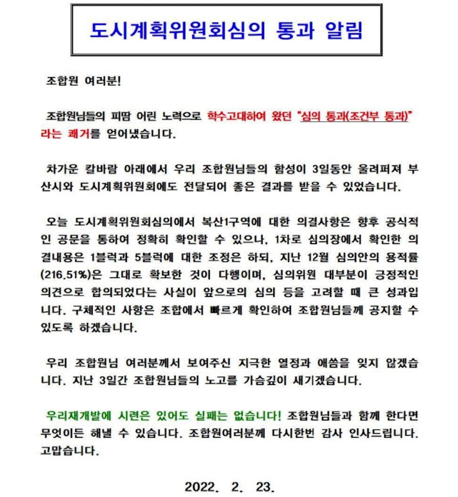 어제 2월 23일 개최된 도시계획위원회 심의에서 드디어 심의 통과가 되어