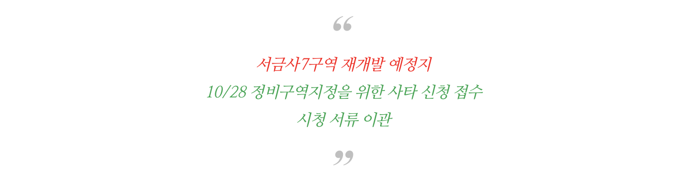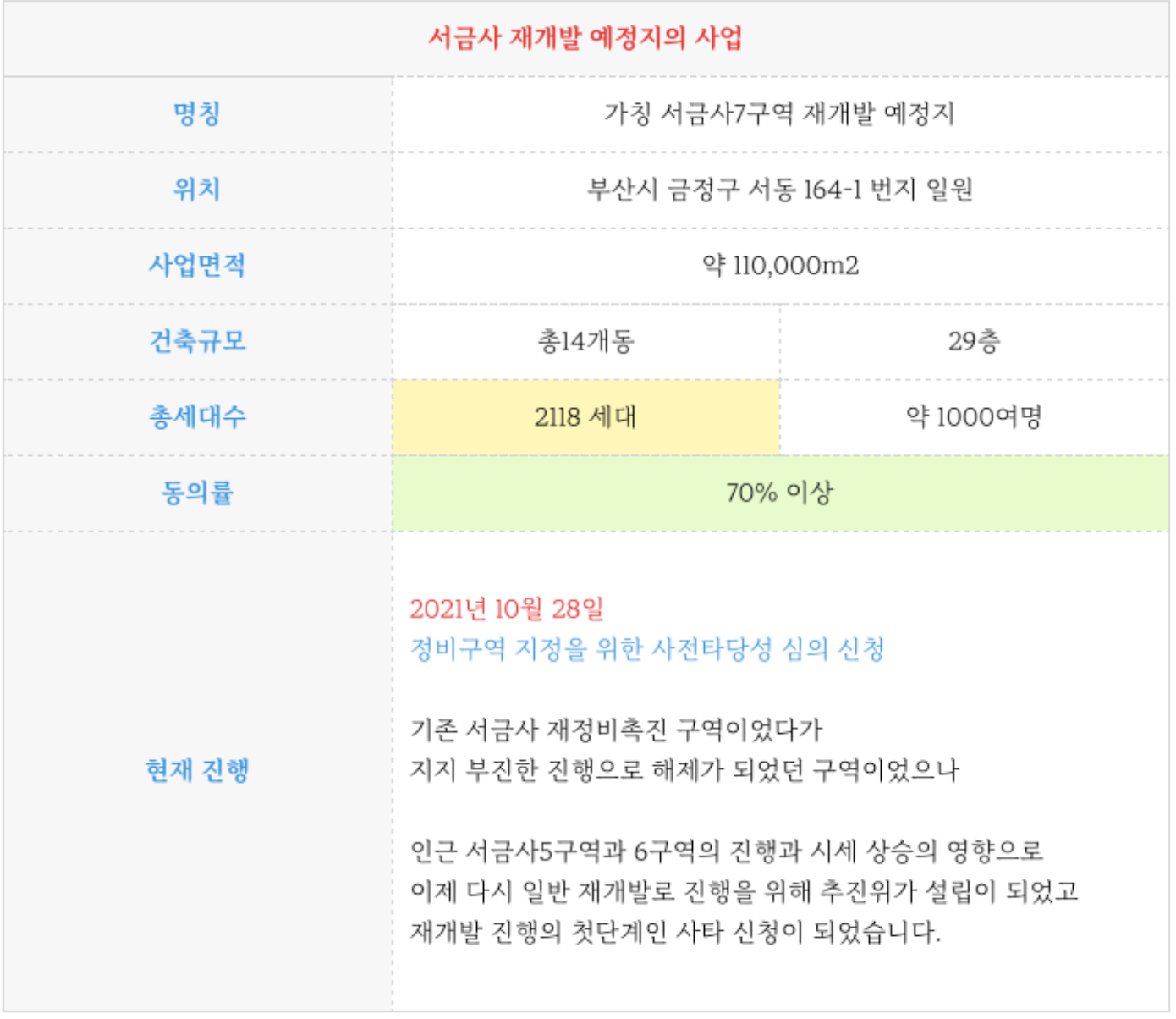 서금사7구역 재개발에 관심이 있으신 분들은 연락주시면 자세히 설명드리겠습니다.