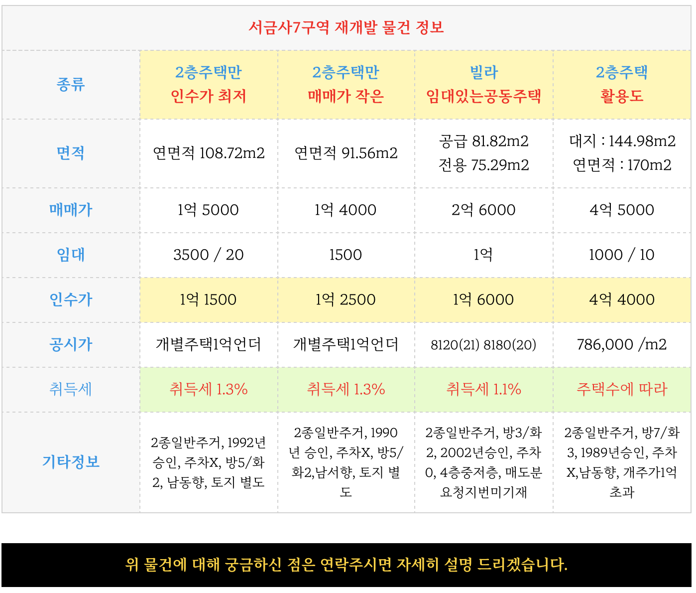 서금사7구역 재개발 예정지 소액 매물 정보를 업데이트 하여 드리겠습니다.