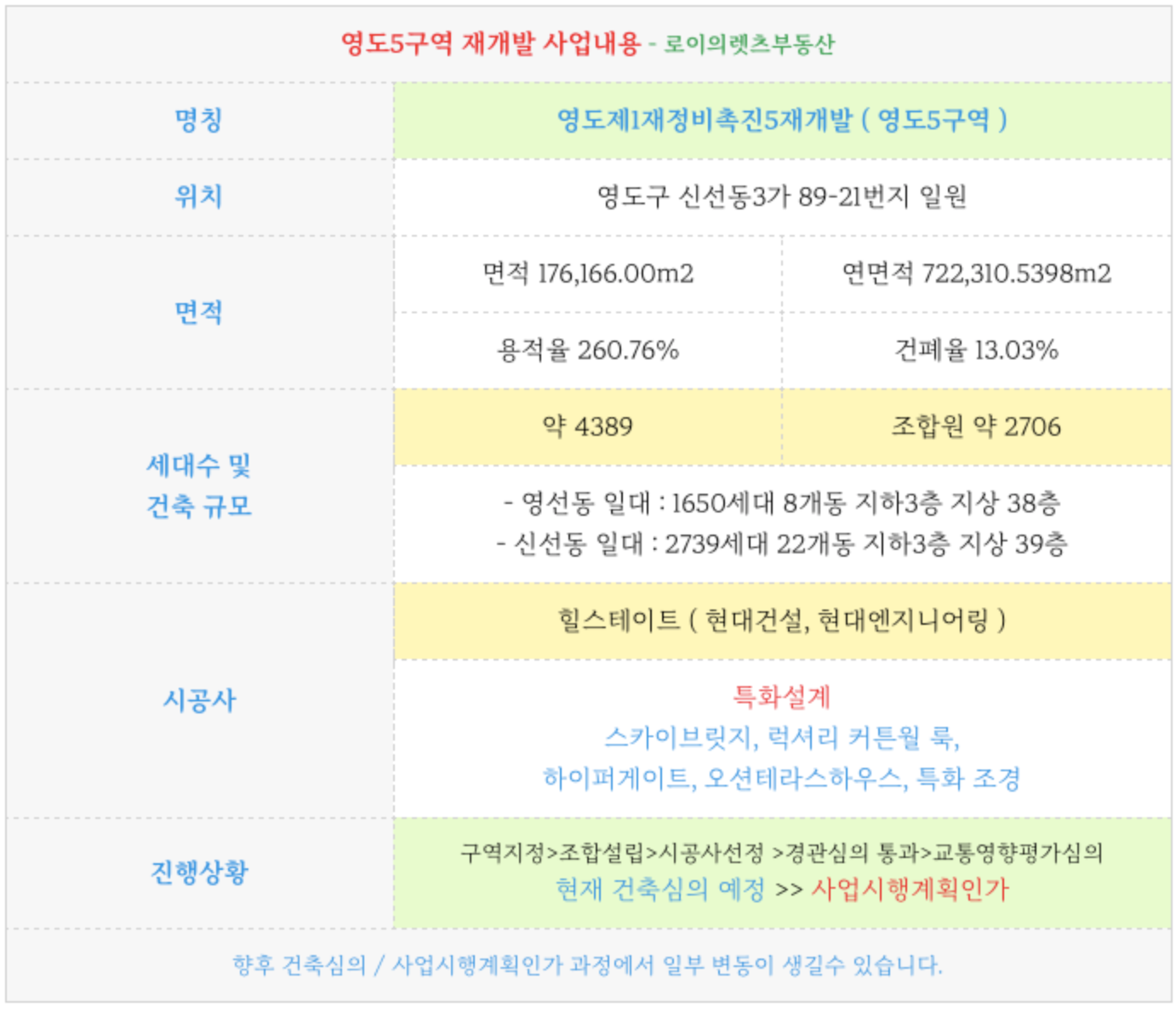 " 영도5구역 재개발 : 건축심의접수 소식 " + 최소 매물