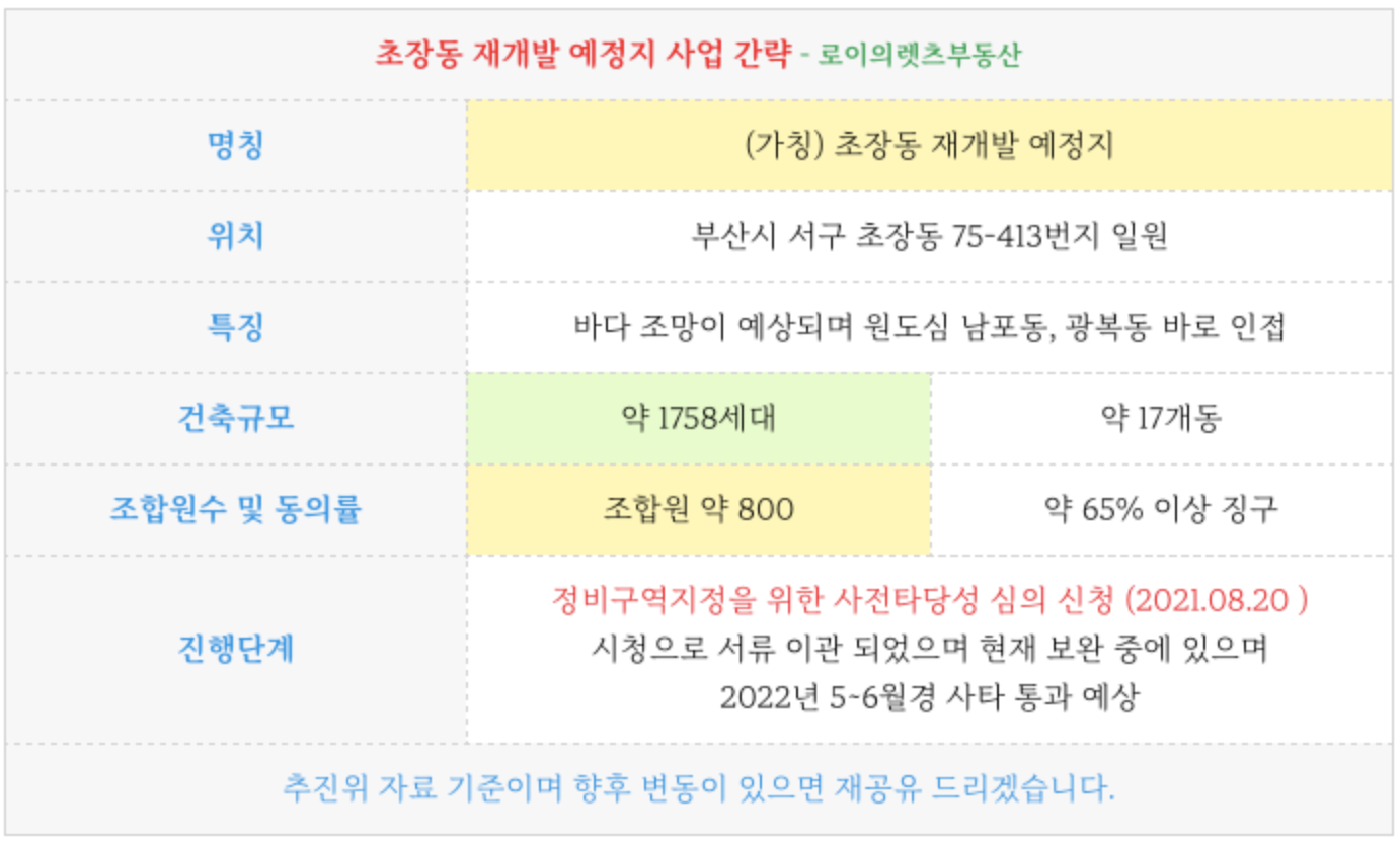 초장동 재개발 예정지의 노후도 등 추가 정보는 아래 페이지를 참고 부탁드립니다.