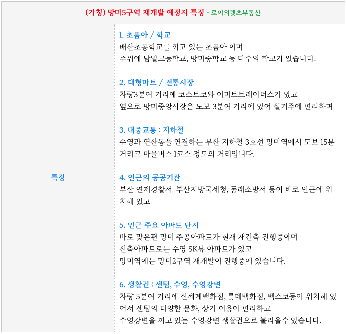 망미5구역 재개발 예정지 구역 특징을 간략히 정리 드립니다.