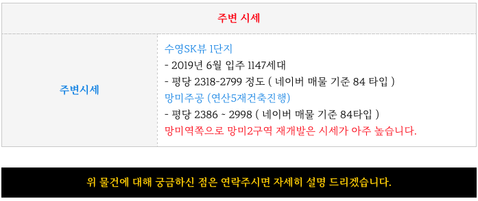 망미5구역 재개발 예정지 물건 정보를 소개 하여 드리겠습니다.