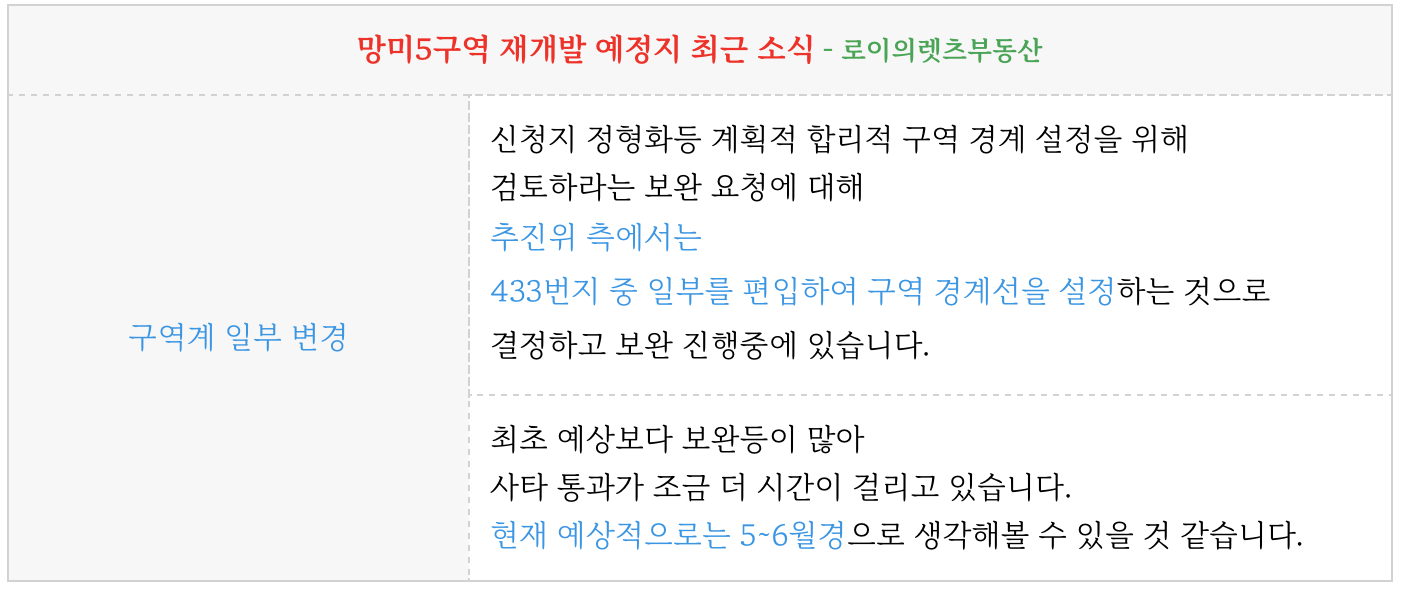 " (가칭) 망미5구역 재개발 : 구역계일부변경 소식 " + 토지 / 빌라 / 주택 매물