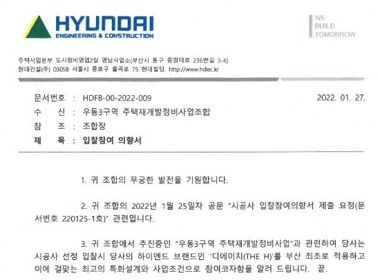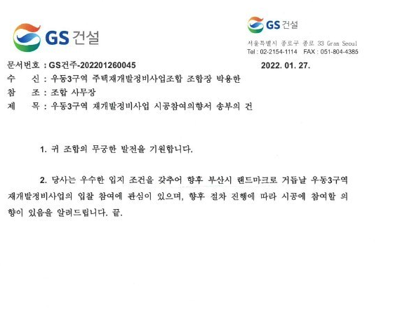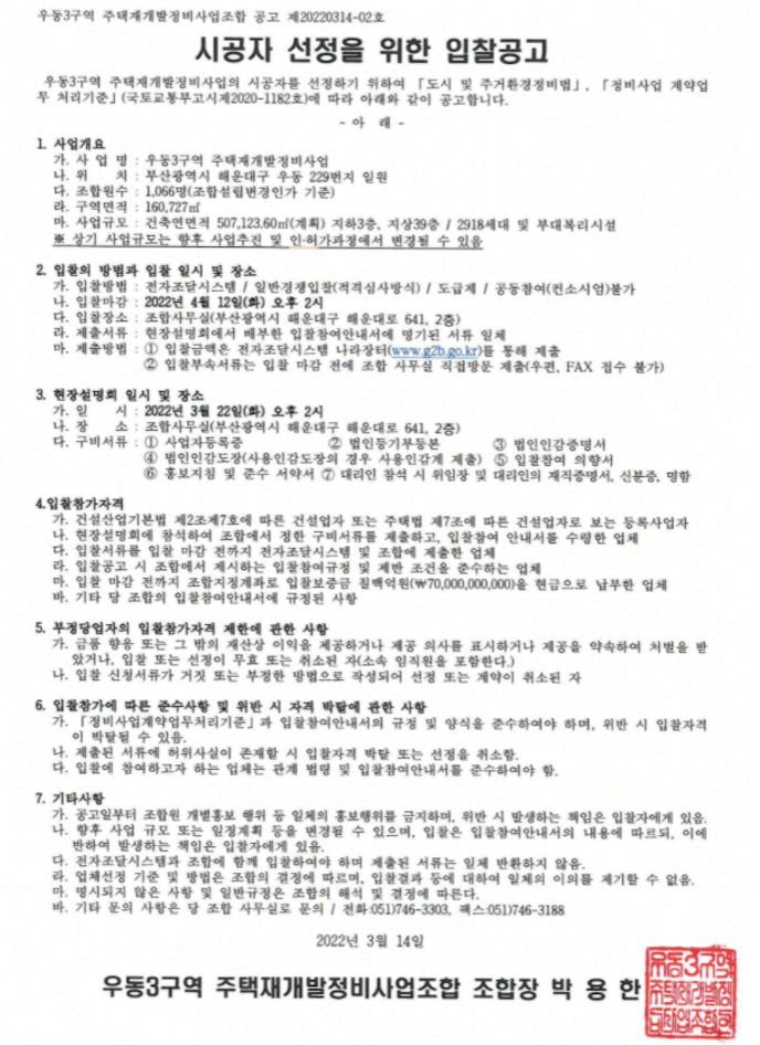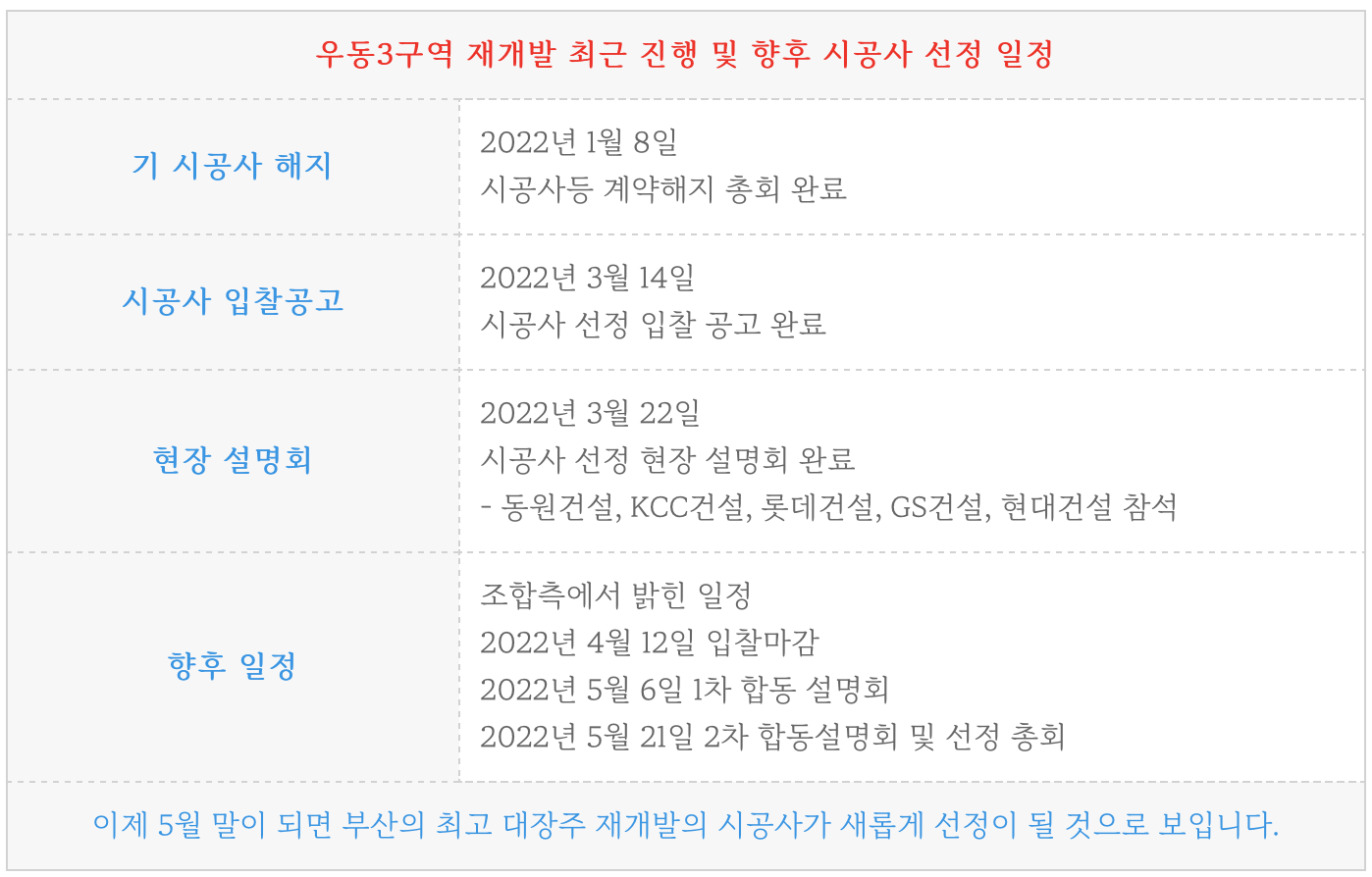 우동3구역 재개발의 시공사 선정 일정과 후보들 소식과 물건정보를 소개해 드리겠습니다.
