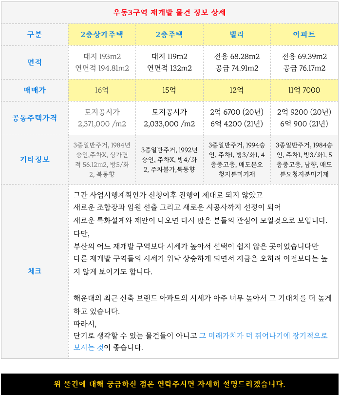 우동3구역 재개발 물건 ( 아파트 / 빌라 / 주택 ) 물건 소개 해 드리겠습니다.