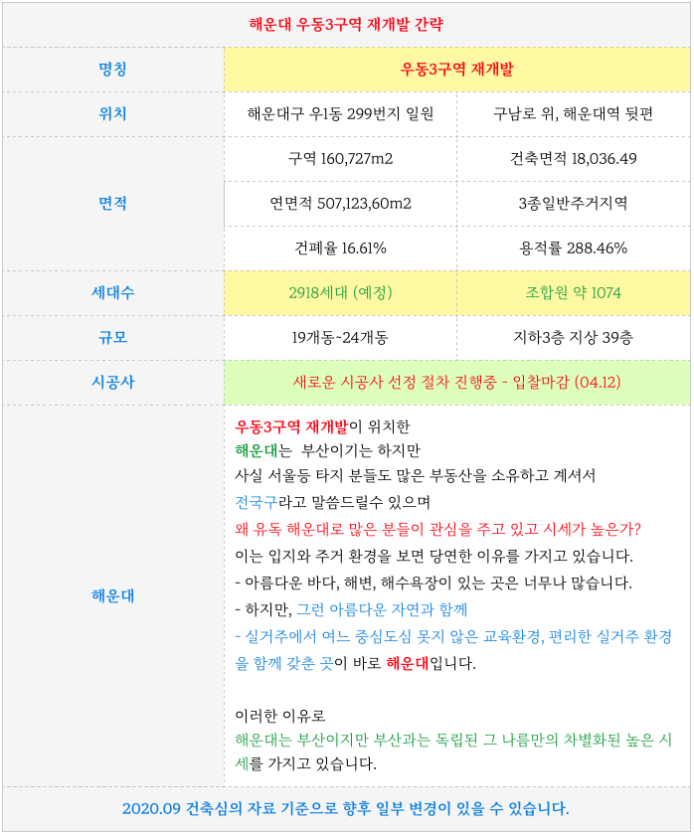 전체 2918세대의 해운대에서의 마지막 대단지로 건설이 될 예정으로