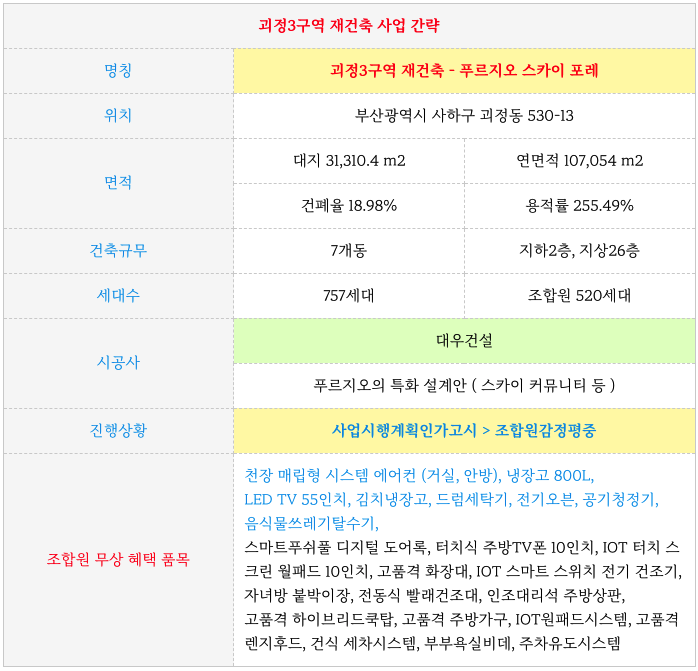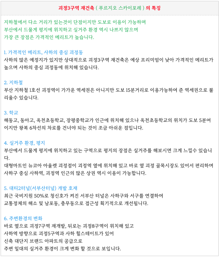 문제없이 빠른 괴정3구역 재건축 ( 푸르지오 스카이포레 ) 및