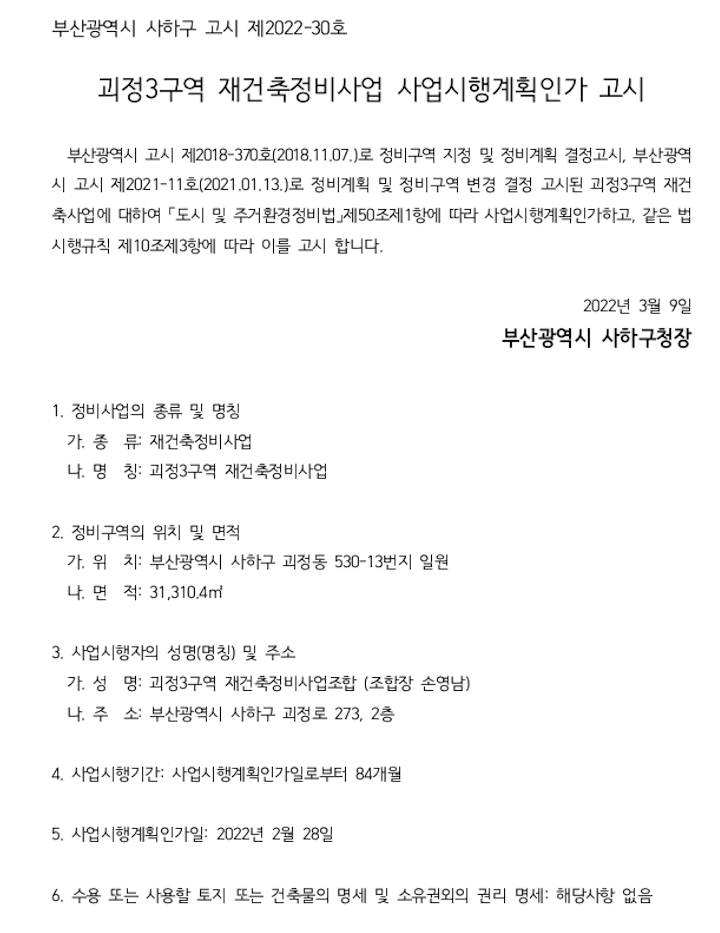 괴정3구역 재건축 사업시행계획인가 고시 & 매물