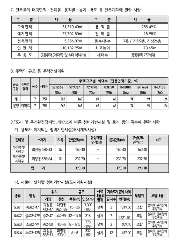 괴정3구역 재건축 ( 푸르지오 스카이포레 ) 은 진행상황 과 타입별 세대수 등은 아래 페이지를 참고 부탁드립니다.