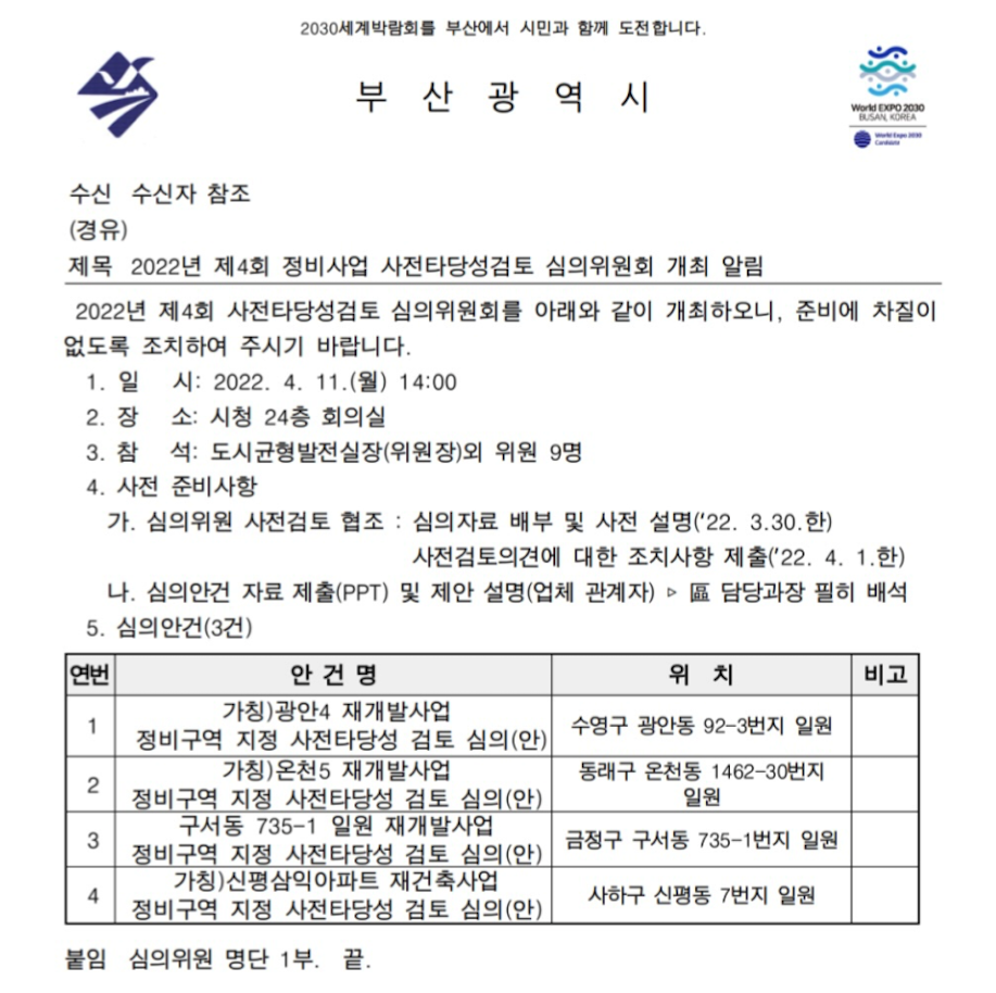 광안4구역 재개발 예정지 최근 소식은 사타 신청이후로 약 6개월 반만에 심의일이 잡혔습니다.