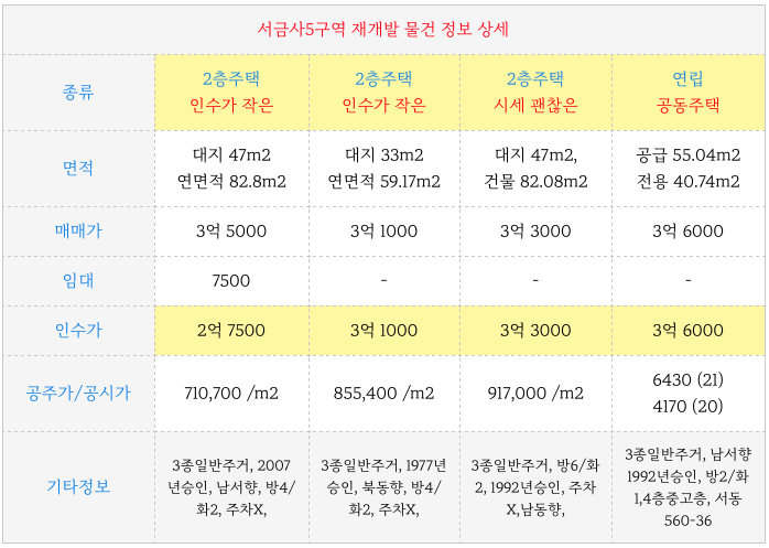 서금사5구역 재개발 시세 최저 원플원 가능 물건등 현재 가능 물건 부터 업데이트해 드리겠습니다.