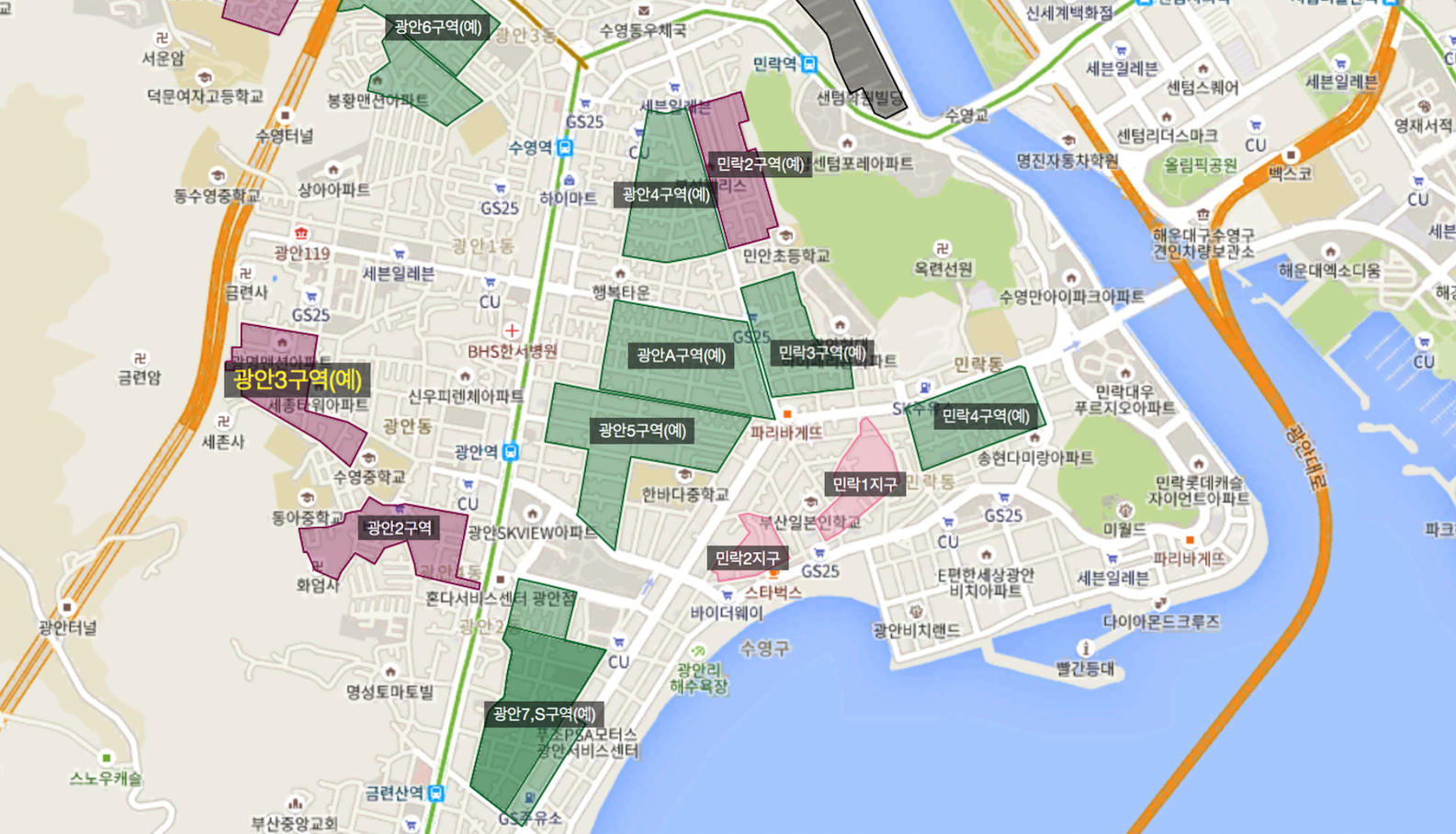 구역지정 앞두고 있는 광안3구역 재개발 예정지 는