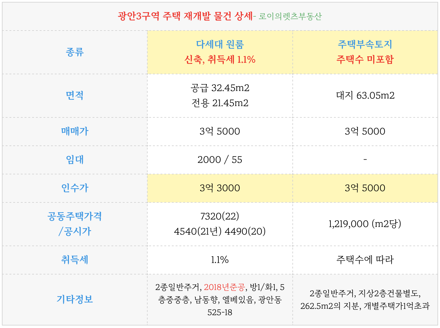 광안3구역 재개발 예정지 물건 정보를 소개해 드리겠습니다.