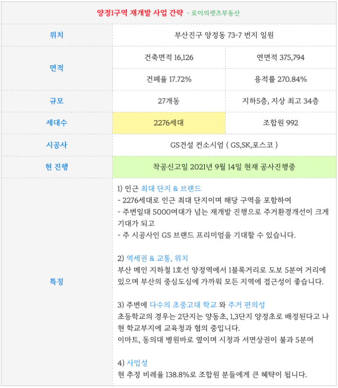 양정1구역 재개발 조합원 입주권에 관심이 있으신 분들은 연락주시면 자세히 설명드리겠습니다.