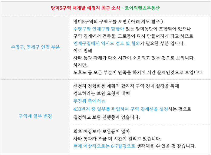 수영구 망미5구역 재개발 예정지 사타 관련하여 최근 소식 입니다.