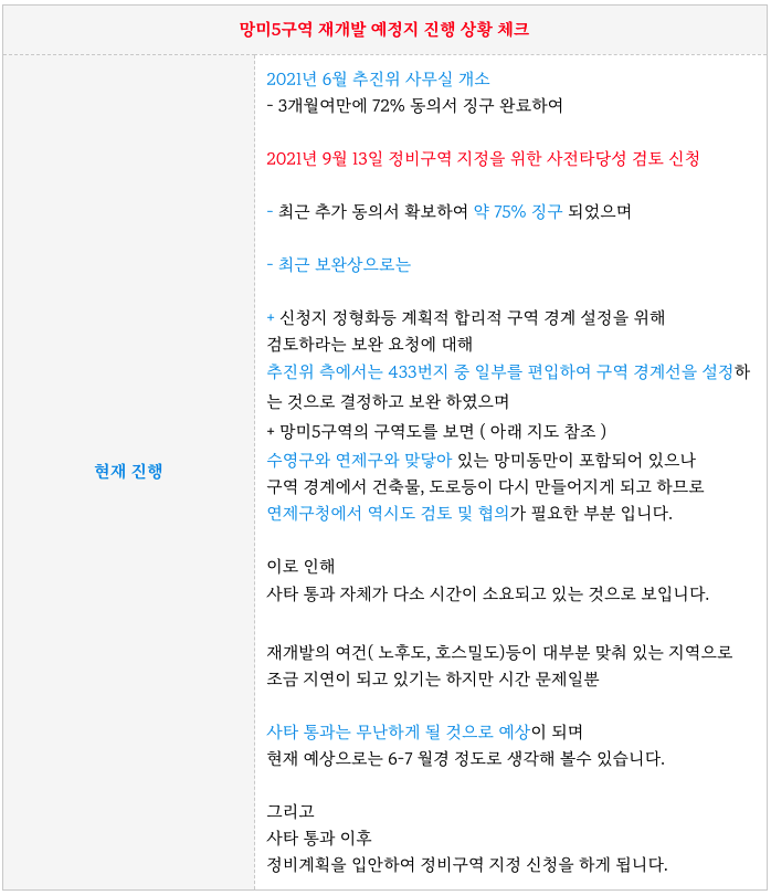 사타협의중 " 망미5구역 재개발 예정지 : 진행상황 " + 최저 토지 등 물건 소개