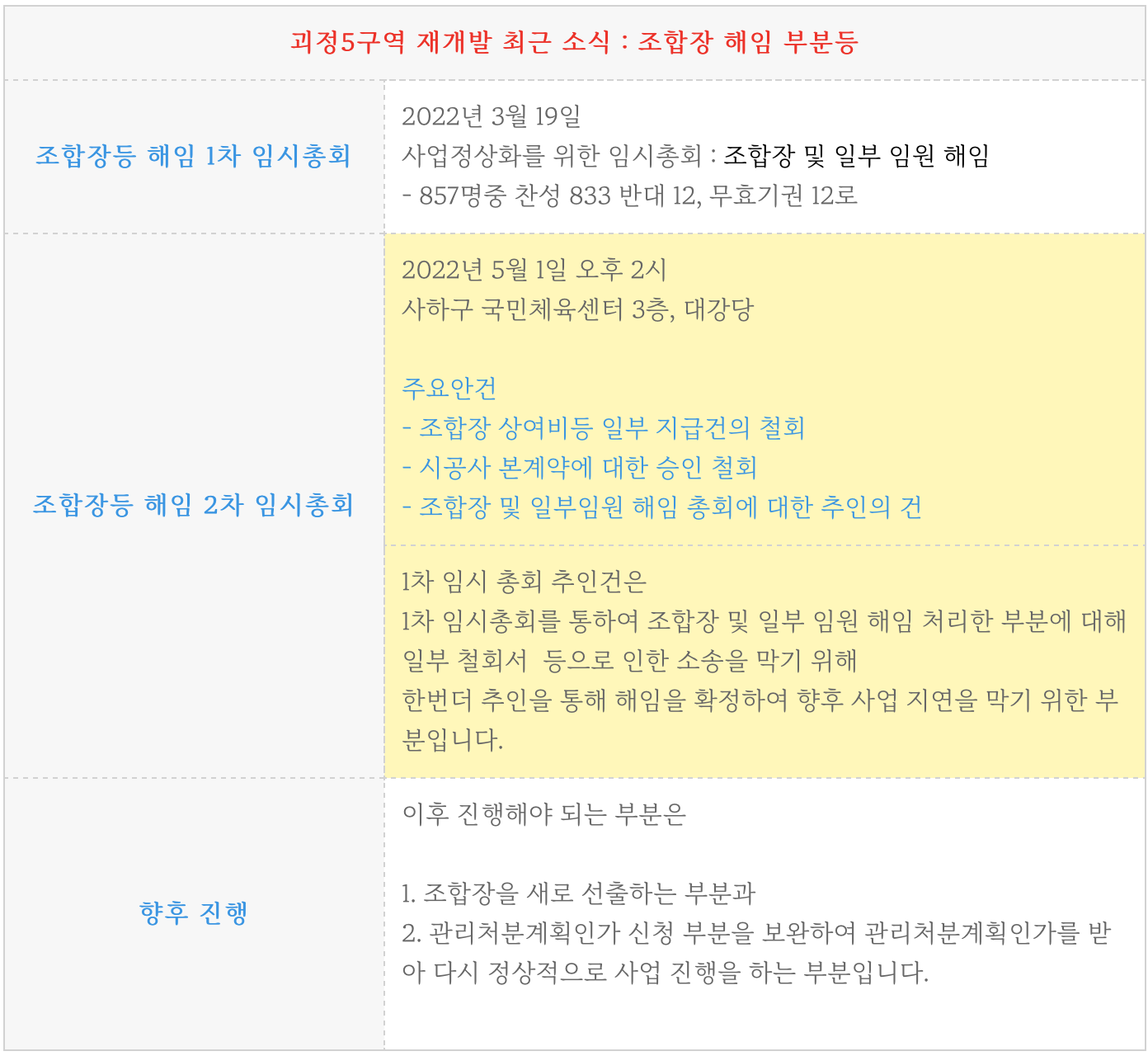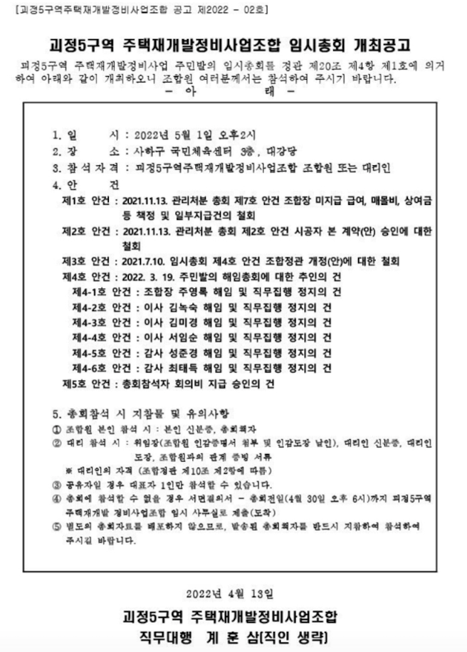 괴정5구역 재개발의 최근 소식은 이미 조합원 총회가 예정되어 있습니다.