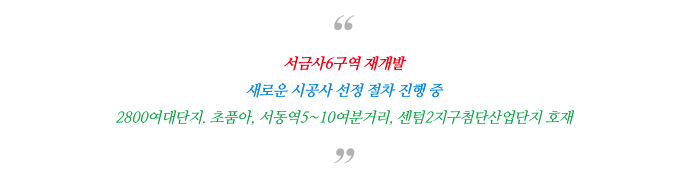 시공사 변경 절차 진행중인 서금사6구역 재개발 괜찮은 물건 정보부터 소개해 드리겠습니다.