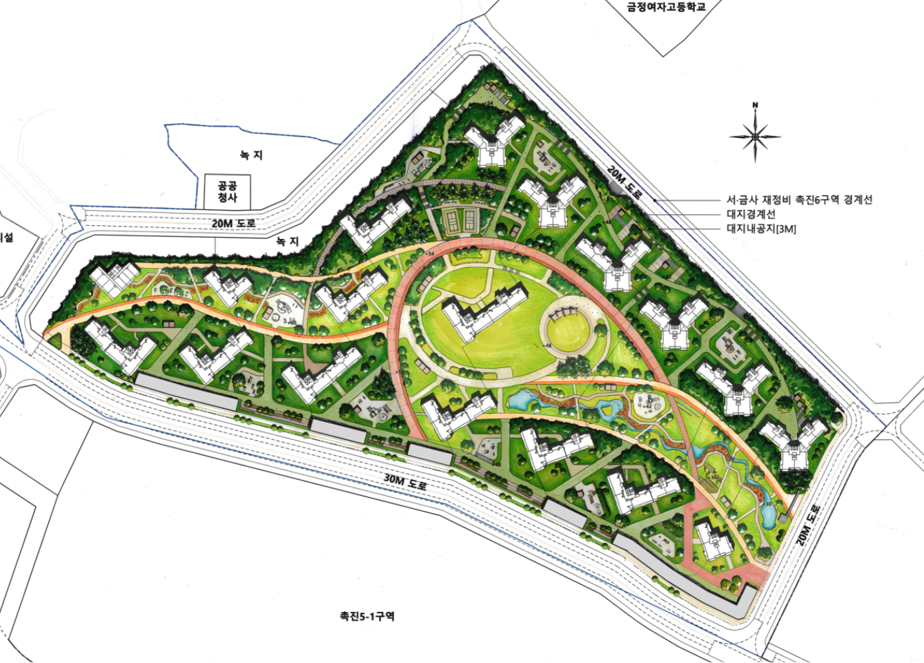 서금사5구역에 비해 단지수는 작지만 상대적으로 평지에 위치하고 있다는 장점을 가지고 있으며