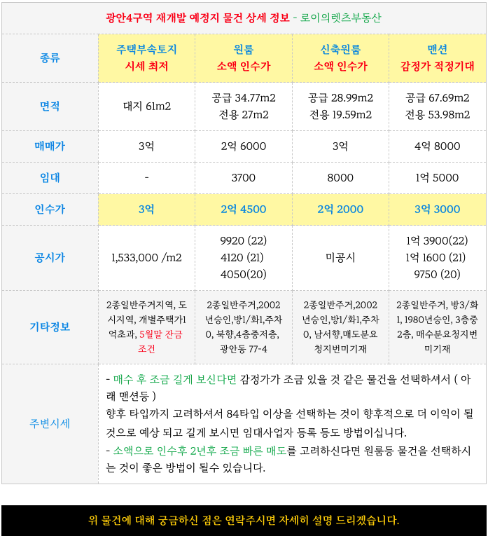 광안4구역 재개발 예정지 최근 소식과 & 시세 최저 부속토지, 원룸 매물을 을 소개해 드리겠습니다.