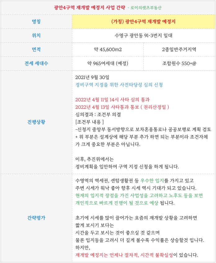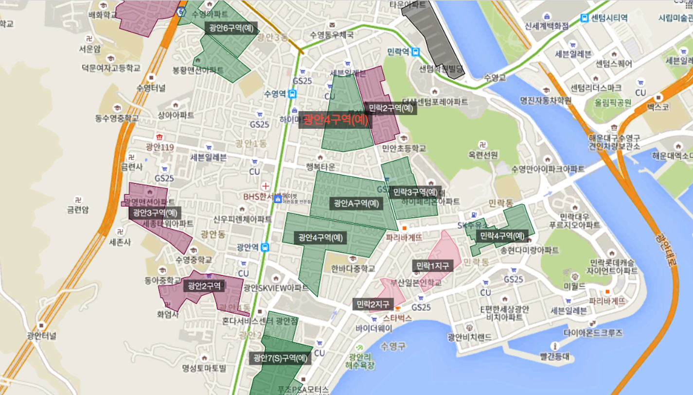 광안4구역 재개발 예정지의 특징을 다시 한번 정리 하였습니다.