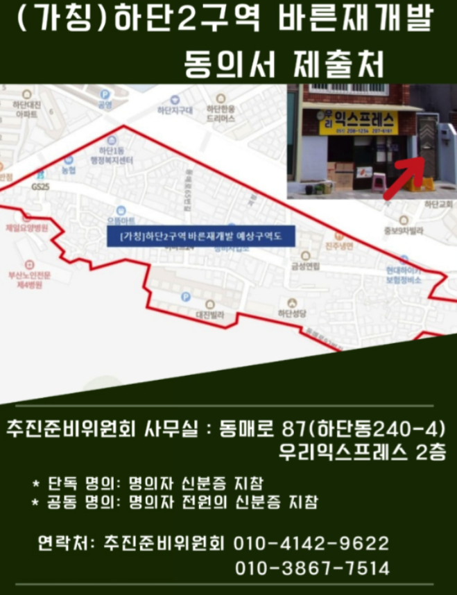 기존 사하 통합 추진위에서 탈퇴하여 새로운 재개발 추진위가 발족하여 새롭게진행 중에 있습니다.