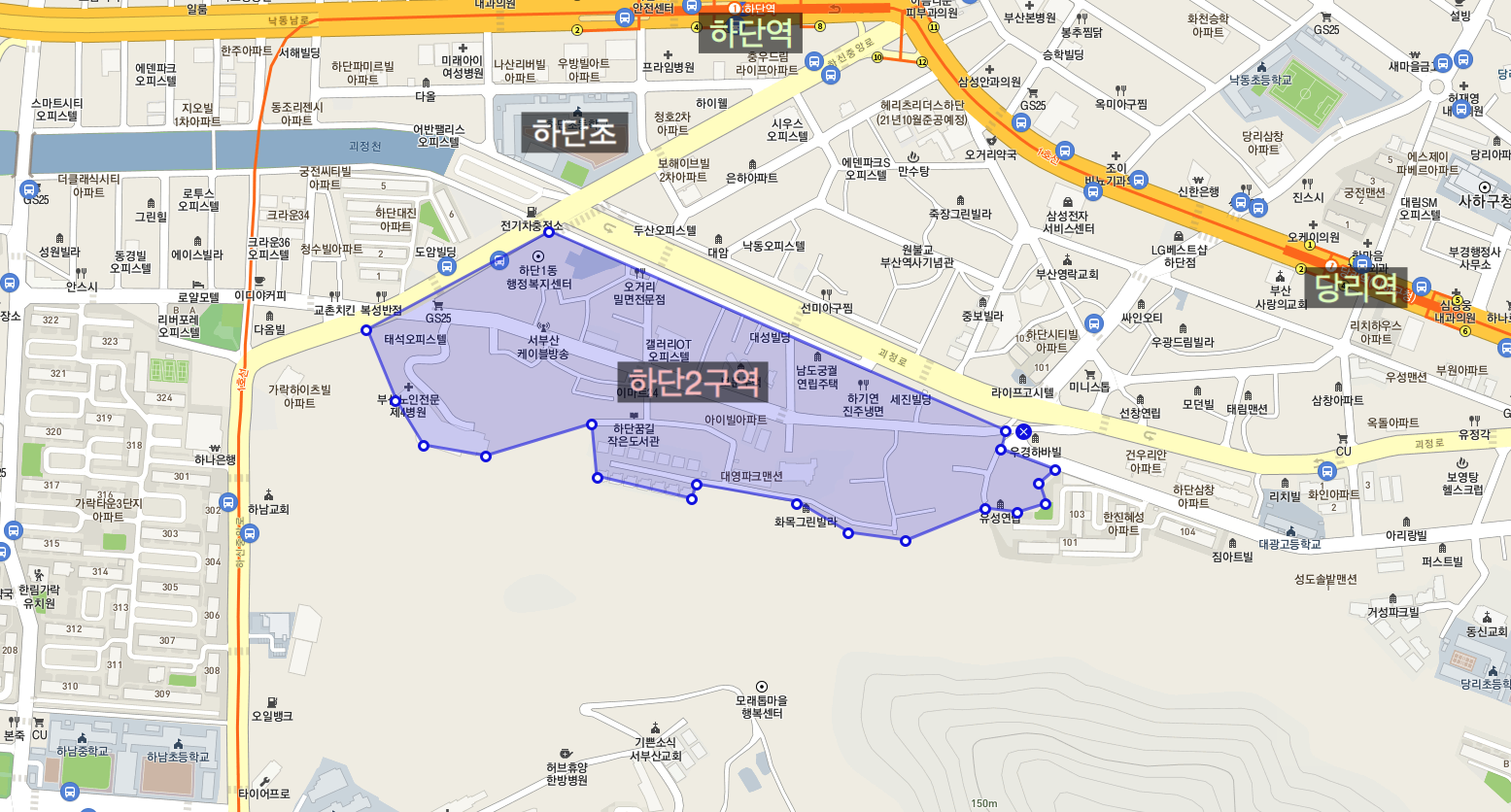 하단2구역 재개발 예정지의 가장 큰 특징으로는