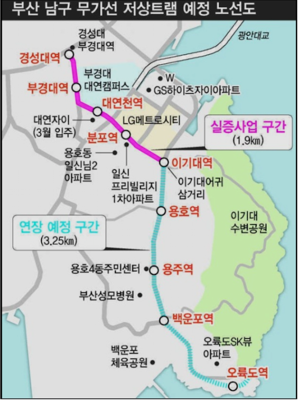 우선 개통 예정인 실중노선 구간( 경성대 ~ 이기대역 )의 이기대역을 이용할수 있는 장점을 가지고 있습니다.