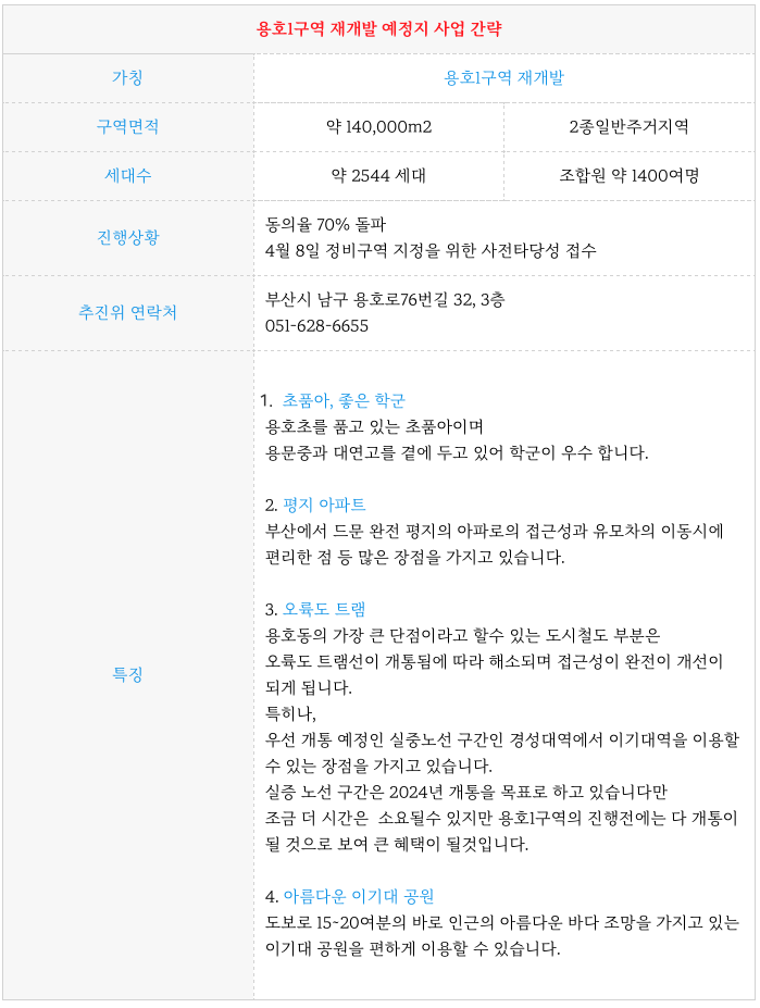최근 사타 신청된 용호1구역 재개발 예정지의 구역 소개 및 물건 정보를 함께 소개해 드리겠습니다.