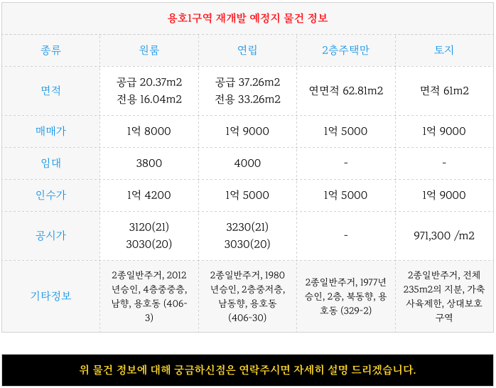 용호1구역 재개발 예정지의 물건 정보를 정리하여 소개해 드립니다.