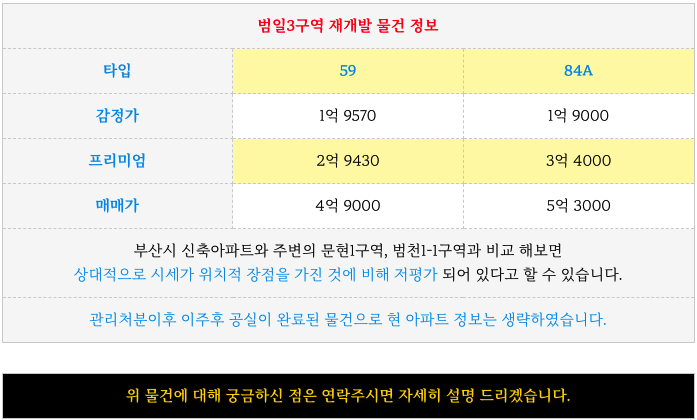 범일3구역 재개발 최근 진행 정리와 84, 59타입 물건을 소개해 드립니다.