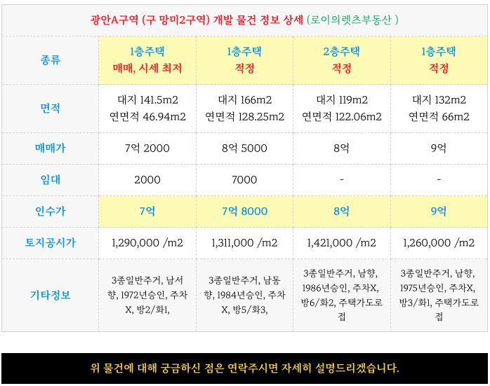 현재 가능 매물들을 소개해 드리고 구역 설명도 추가 드리겠습니다.