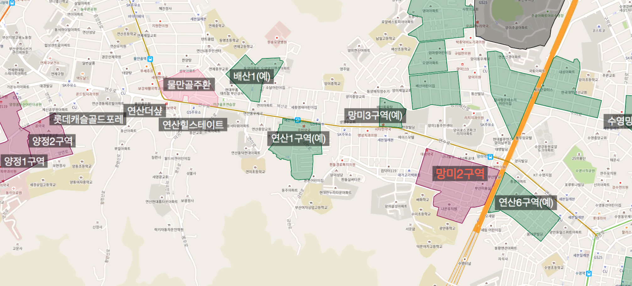 양정1구역, 양정2구역, 연산롯데케슬골드포레, 연산더샵, 힐스테이트 연산, 연산1구역