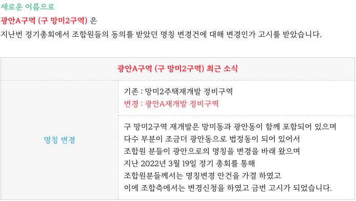 수영구 광안A구역 (구 망미2구역) 재개발 최근 구역 명칭 변경 소식과 물건을 소개 해 드리겠습니다.