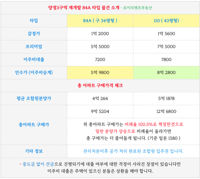 " 양정3구역 재개발 "의 가격조정된 84A 물건과 110타입 물건을 소개해 드립니다.