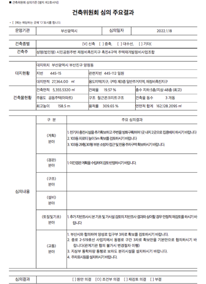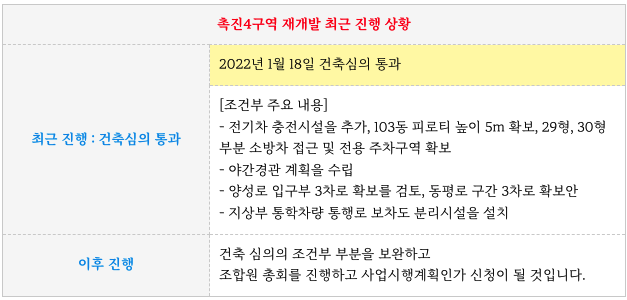 촉진4구역 재개발은 최근 건축심의를 통과하였습니다.