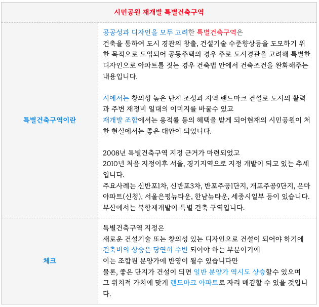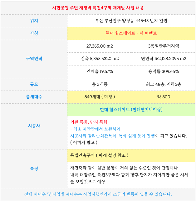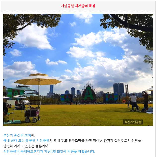 부산 시민공원 재정비 촉진4구역의 특징 을 정리해 드립니다.