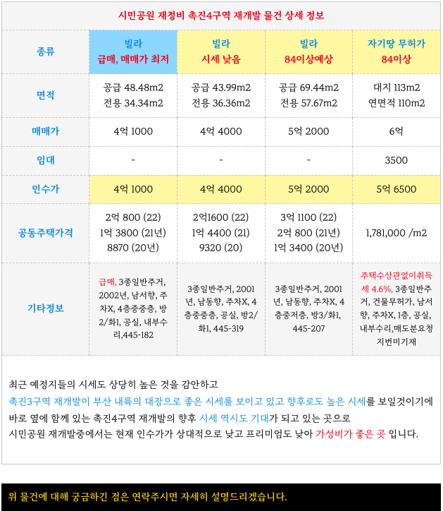 시민공원 촉진4구역 재개발 급매 빌라 (시세, 인수가 최저)