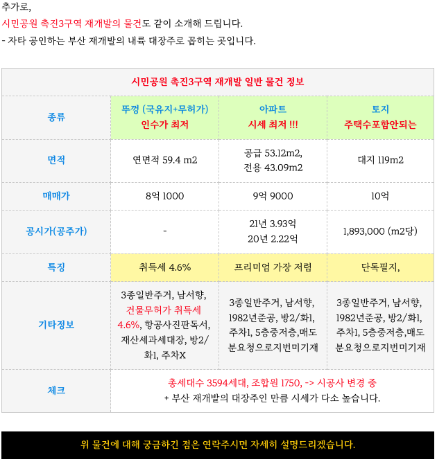 시민공원 촉진4구역 재개발 최근 진행과 시세 최저 급매 물건 빠르게 소개해 드립니다.