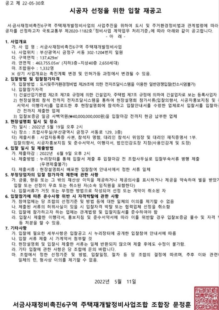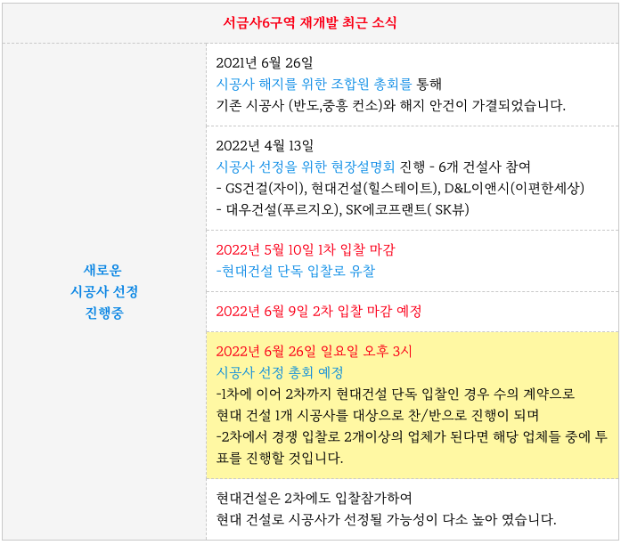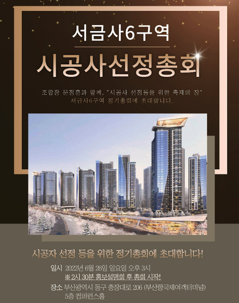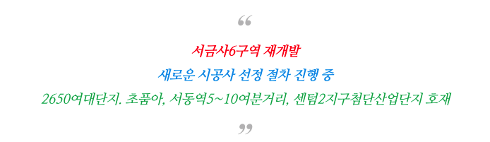 새로운 시공사 선정은 서금사6구역 재개발의 호재로 보입니다.