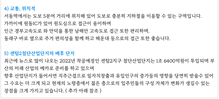 -서금사5구역에 비해 다소 지연이 되며 시세가 상대적으로 낮아 향후 시공사 선정 후 진행이 되면
