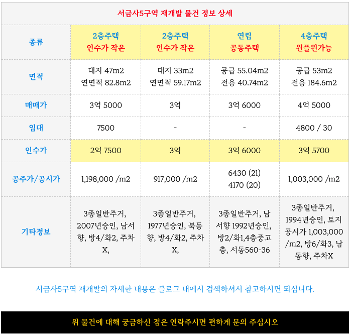 인접해 있는 서금사5구역 재개발 물건 역시 소개해 드립니다.