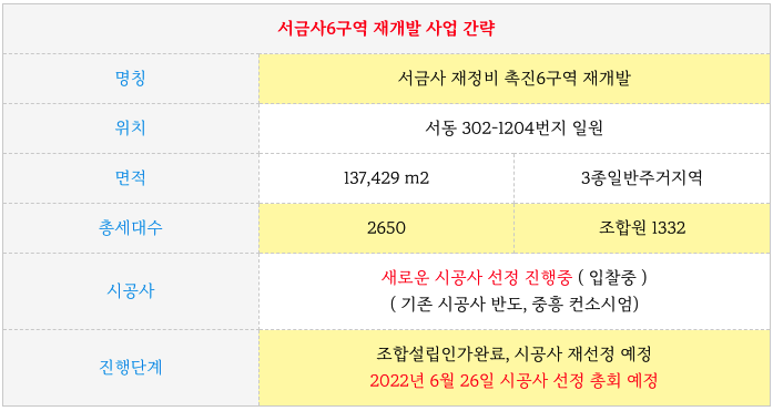 서금사6구역 재개발은 최근 시공사 변경 절차 진행 상황 입니다.