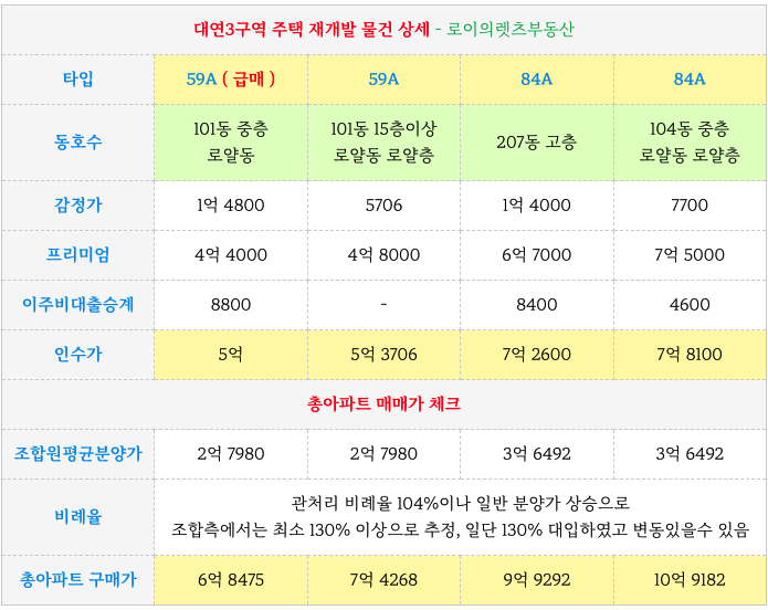 대연3구역 재개발 59타입 급매 물건등 정보 소개해 드리겠습니다.